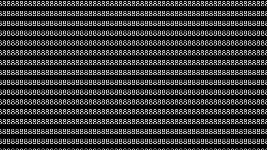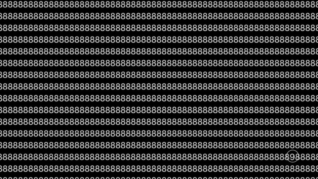 A minimalist image shows hundreds of tiny “8” characters laid out in tight rows on a flat background. Somewhere in that sea sits one “9,” exactly once.